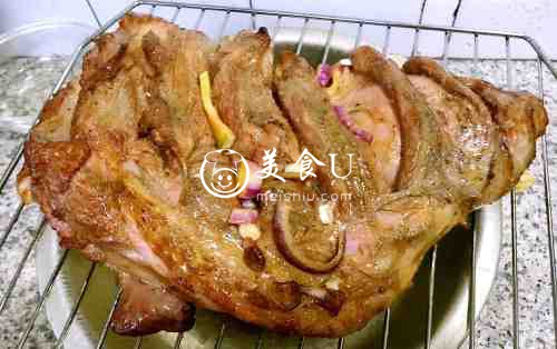 烤箱上下火180度预热20分钟后将羊腿放入烤箱中剩余的调味料再涂抹一些在羊腿上开始烤羊腿上下火200度烤35分钟
