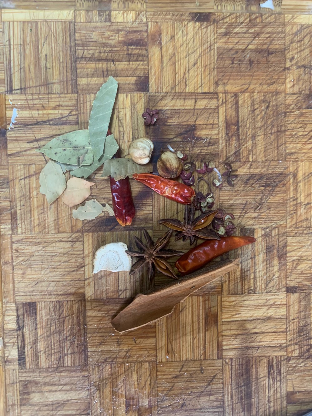 这是要炒的料,花椒大料桂皮香叶肉蔻白芷,还有放良姜丁香之类的,我觉得这两味太冲了,有点抢味不喜欢。