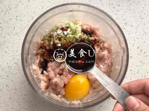 猪肉切小块+虾仁+姜片,搅成肉泥