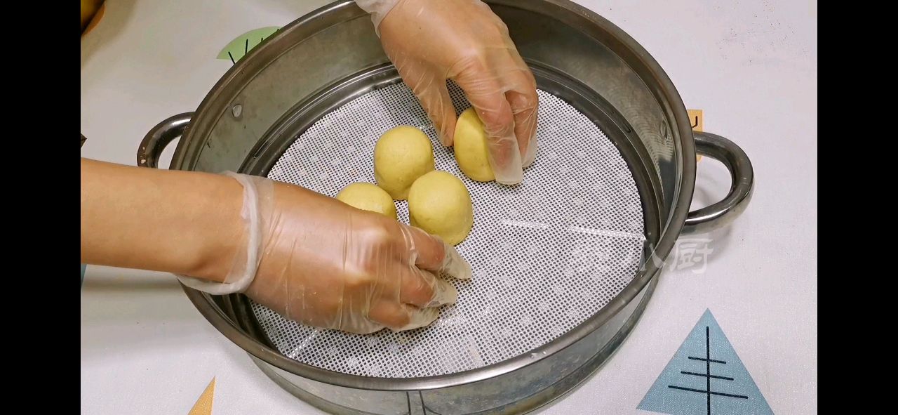 然后再把发酵好的面团,分成每个30克左右的小面团儿。