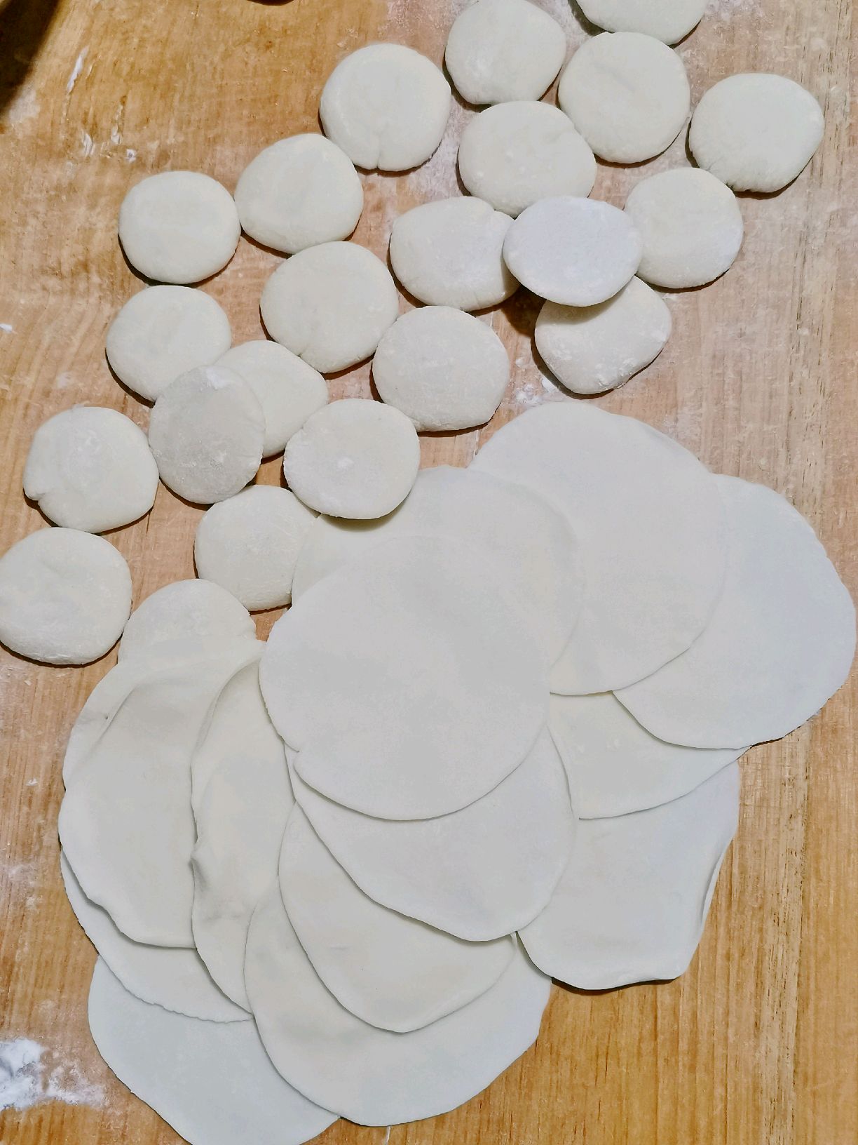 处理瓜皮之前先和好面,饧好的面更有劲。取一块面揉匀,揪成小剂子,擀成外面薄中间厚的圆皮