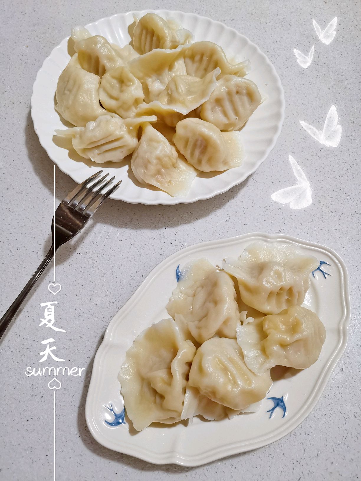 水开后放适量的盐防粘,待盐溶解后下饺子,用勺子轻轻搅拌(民间煮饺子有几句俗话:“煮饺子先煮皮,后煮馅”,“盖锅盖煮馅,敝锅盖煮皮”。)。捞一个饺子用手轻轻按一下皮,皮不塌陷迅速弹起就熟啦
