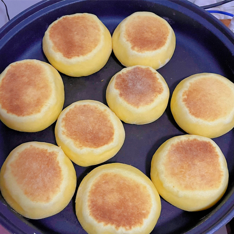 团成小剂子,擀成小面饼。醒发至用手掂一下轻飘飘的