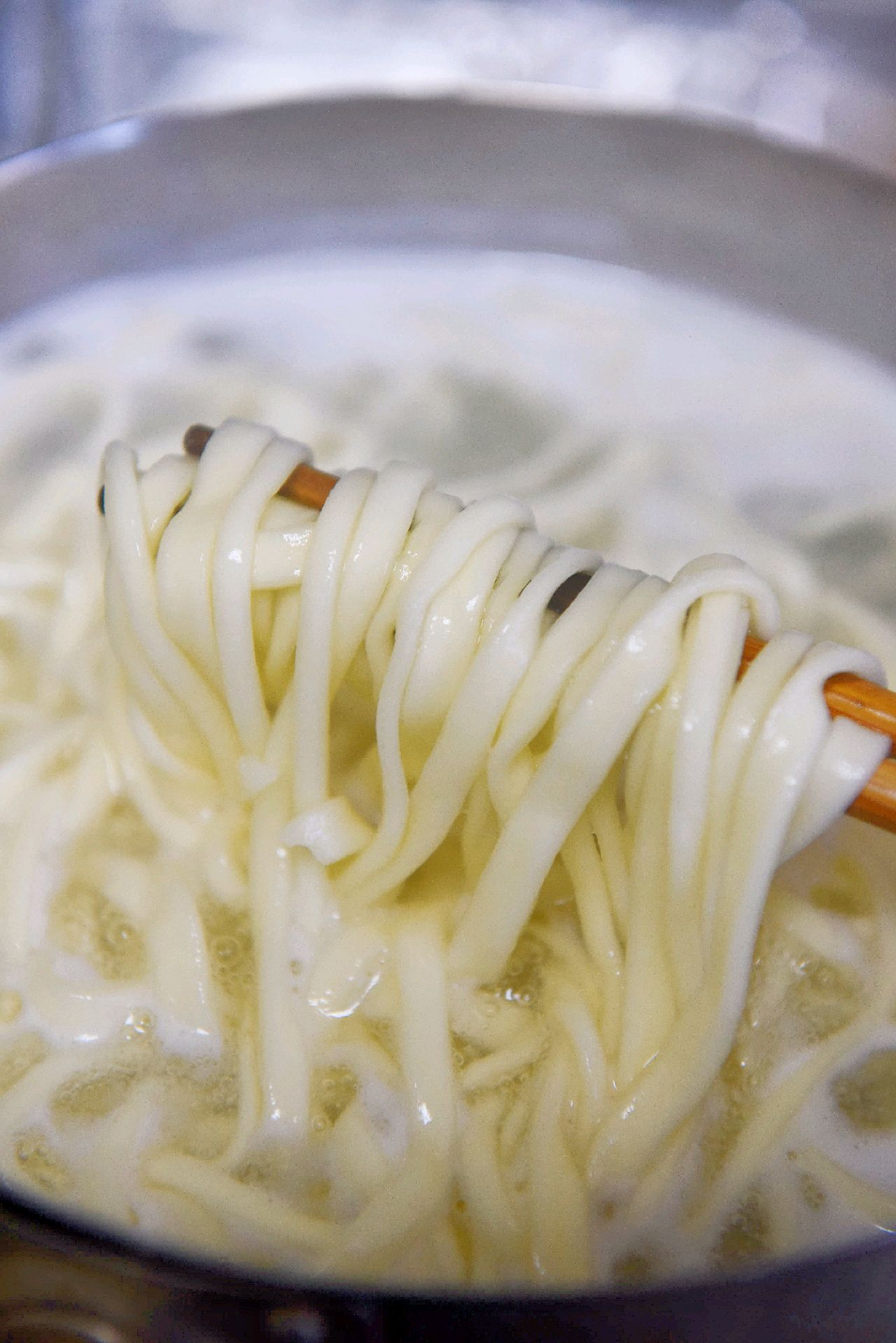 将面条和黄瓜丝放碗中,淋上炒锅里煮小龙虾的汤汁