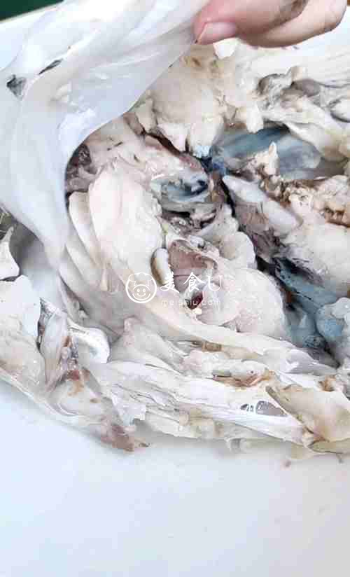 鱼头要用70℃—80℃的水温煮至六七成熟,捞出后泡冷水,才好拆骨,拆好的鱼头也可红烧。