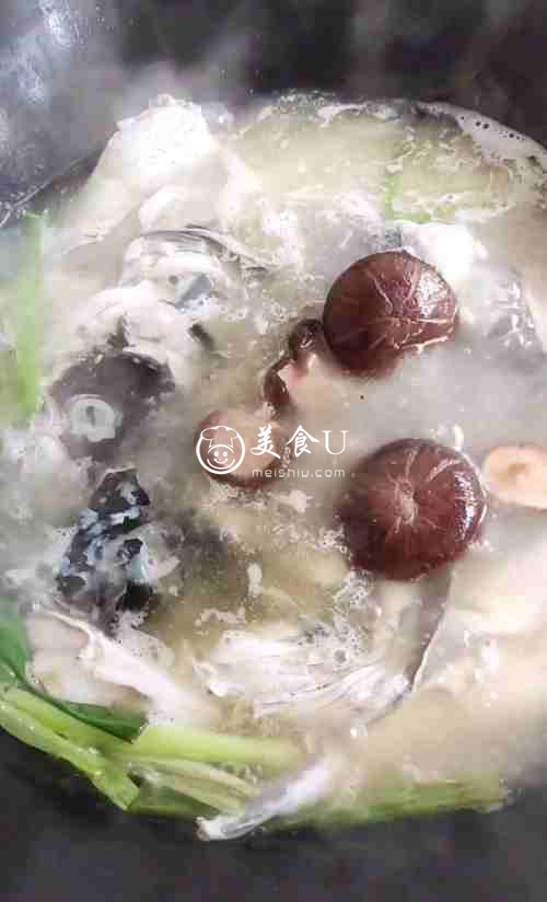 中小火慢慢的煨,鱼头入锅,不要翻动,轻晃锅体,保证鱼头的完整,烧至汤汁浓稠时,勾入少许水淀粉。