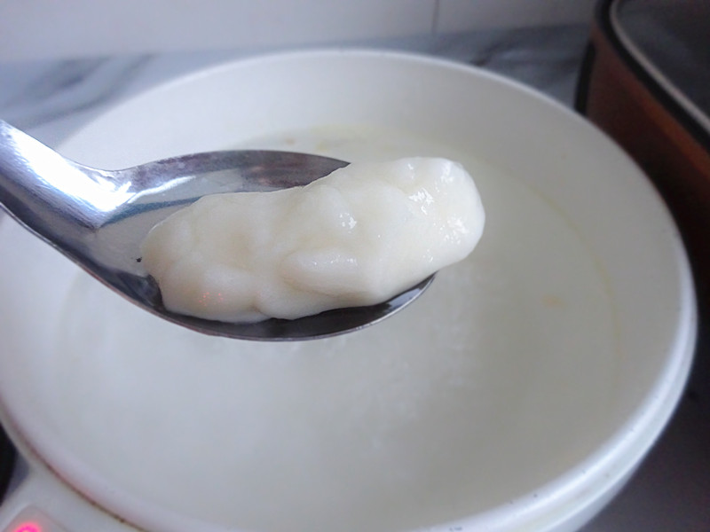 先把糯米粉和成软硬适中的团,随便揪下一块,用沸水煮3分钟左右,煮熟。