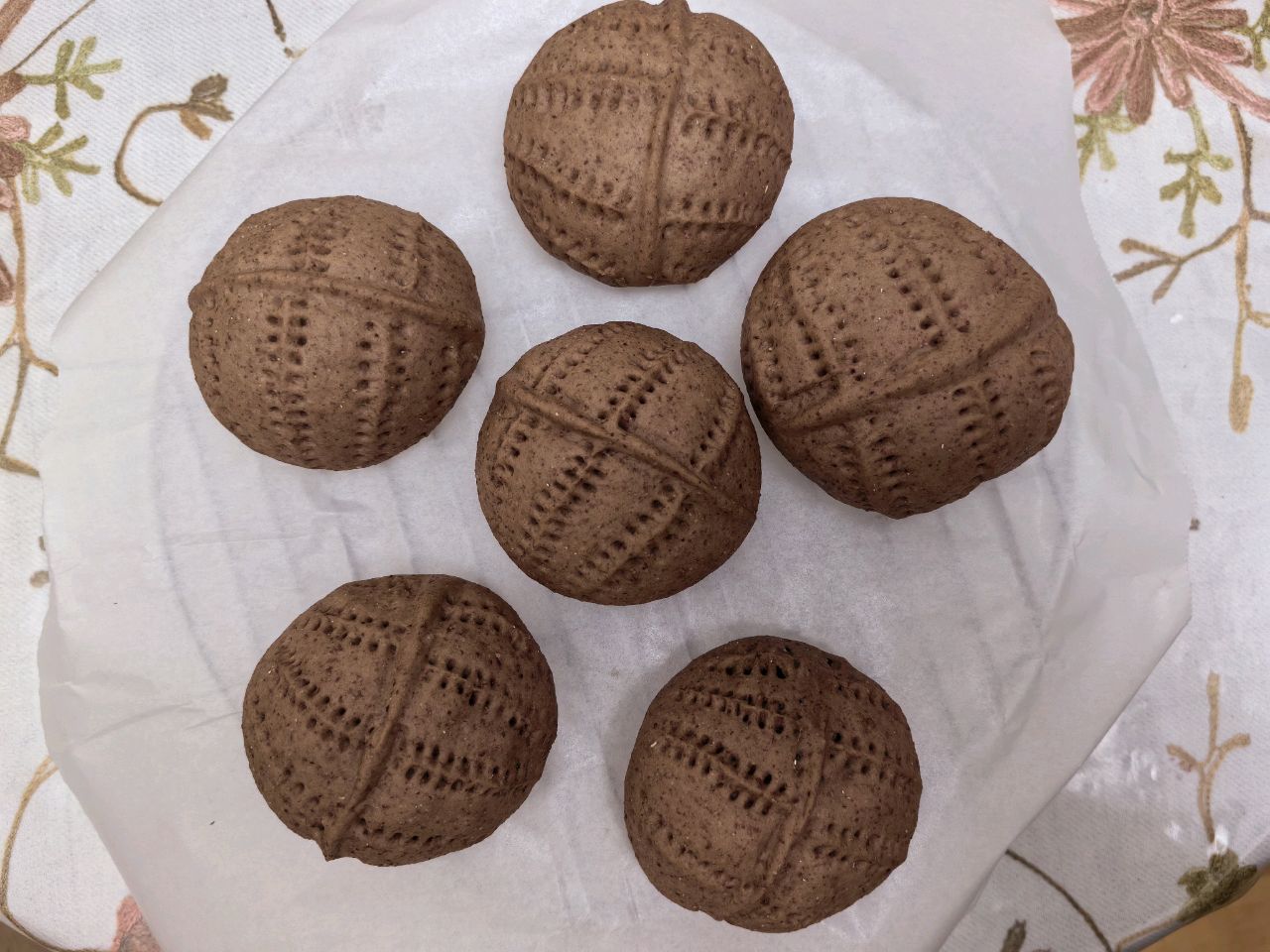 主料:黑全麦自发粉150克 室温清水200克 黑芝麻馅20克 核桃碎100克 中筋面粉150克 干酵母3克 黄油25克 炼乳30克 可可粉8克
