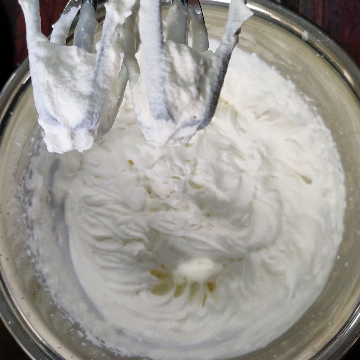 或者打发杆奶油尖尖不掉落,不塌挂就好啦