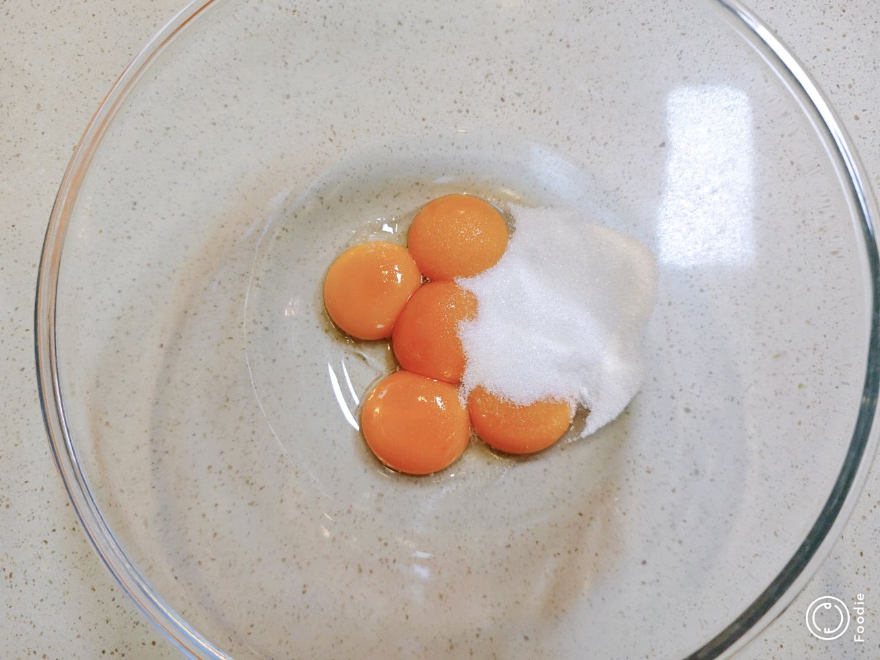 5个蛋黄➕35g细砂糖,搅拌打散