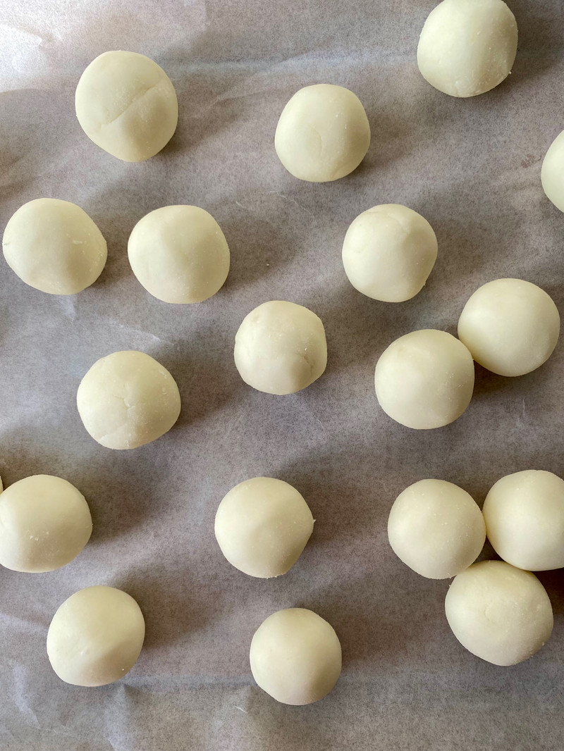 水开放入山药糯米汤圆煮熟,泡冷水备用