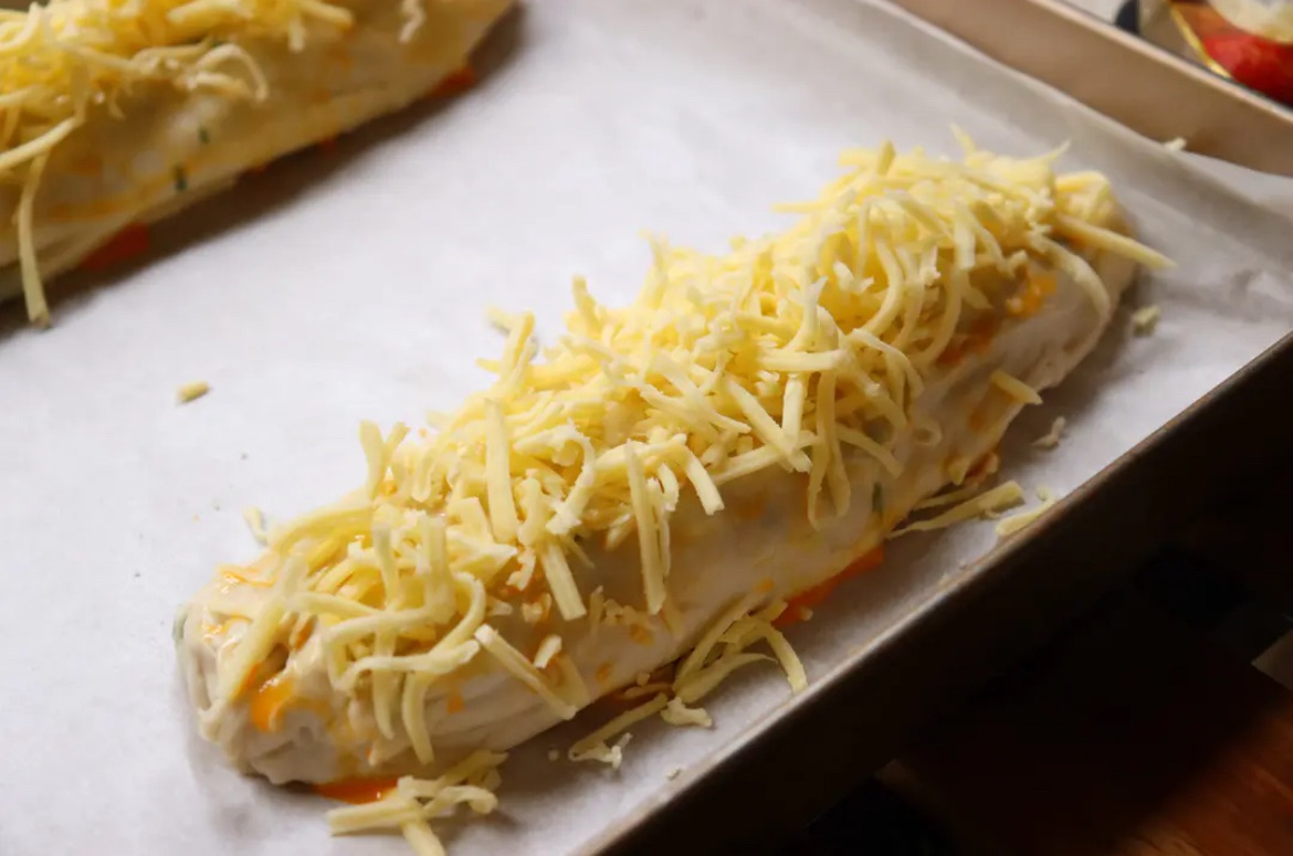 6. 铺上满满的芝士,烤箱180度30分钟。