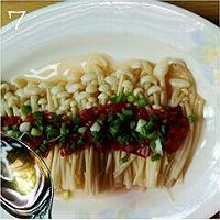 天气热,不想炒菜,各种蒸菜,拌菜最喜欢。金针菇加入 剁椒来蒸,鲜中带辣的很是开胃。 各种蒸菜,不管是荤菜还是素菜,最后淋入滚油这步很重 要,特别香,而且听着滚油淋点葱花上那吱吱声就让人有食欲。 因为剁椒本身是咸的,所以口味淡的话就不用再放盐了,口味重 的可以稍为放一点点盐调味。