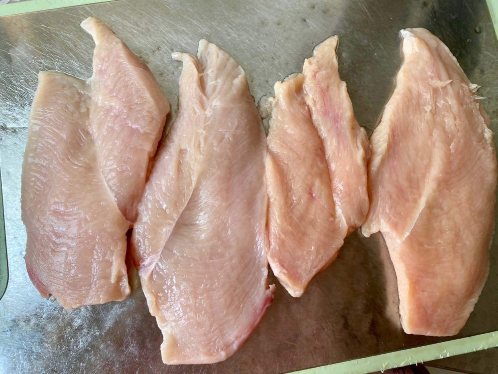 鸡排先裹一层鸡蛋液,再裹一层面包糠