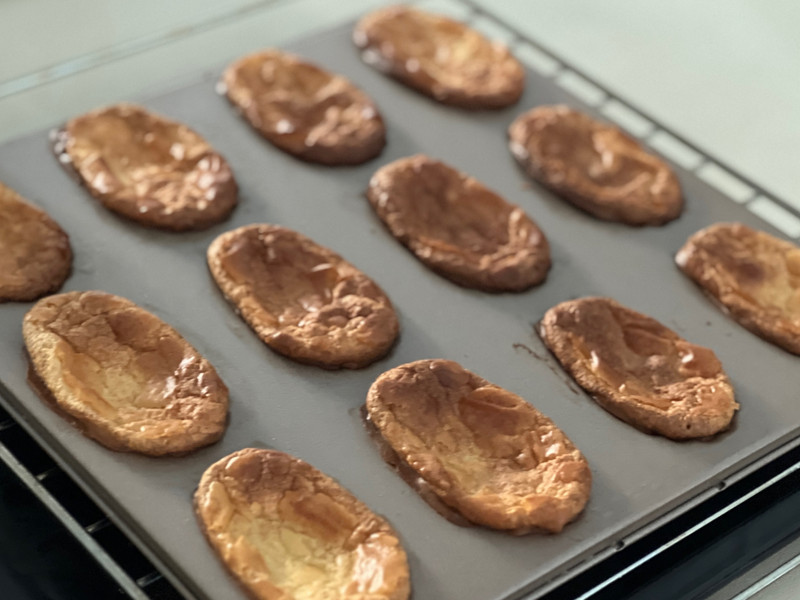 融化的黄油需要晾凉,否则会烫熟鸡蛋! 甜度和烤箱温度酌情调整!