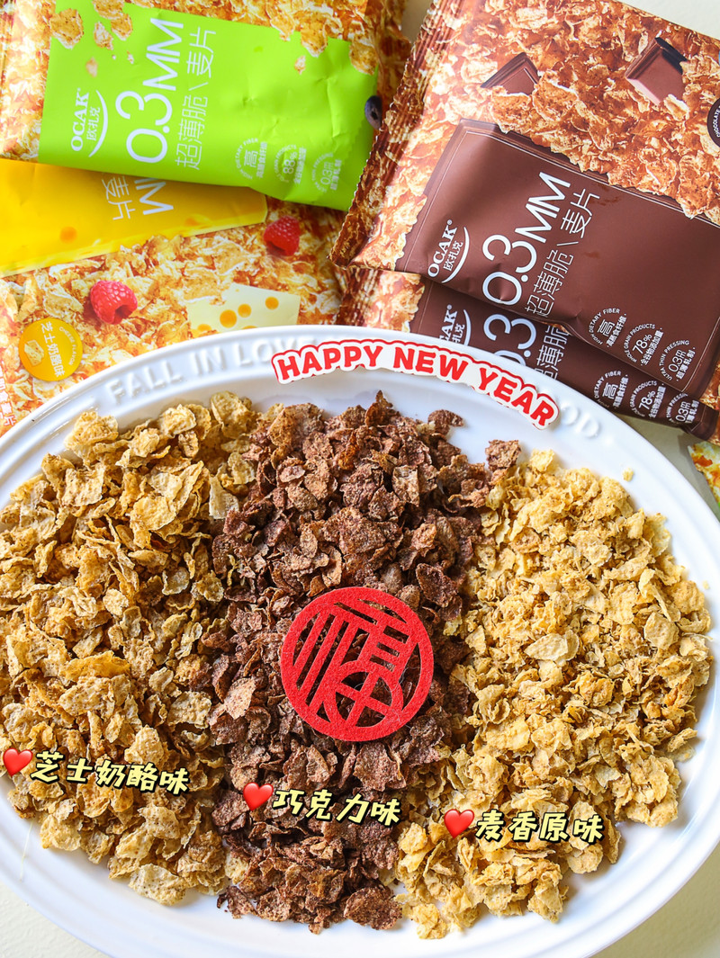 有多少宝子跟我一样,想吃酥脆的零食?但又不喜欢油腻腻的膨化食品!那你一定要试试欧扎克超薄脆,非油炸非膨化,0添加白砂糖,简直是零食界和早餐界的清流啊!老人小孩都能放心吃,干净又安全,妈妈再也不用担心我的零食选择啦? 说到欧扎克,不愧是燕麦界的扛把子!做了十多年的国民品牌,不是盖的!他们新出的这款“超薄”形态的麦片?原麦直压工艺每片麦片只有0.3mm薄酥酥脆脆的吃起来像薯片一样,根本停不下来!一共有三个口味,我一次性全入了 今天要来点不一样的——酸奶碗大改造!只需三步:一层酸奶打底,撒上欧扎克【超薄脆麦片】(我选了芝士奶酪味、巧克力味、麦香原味3种口味)再点缀些新鲜水果,搞定!一勺挖下去层次感爆棚!酸奶的绵密、麦片的酥脆、水果的清甜...每一口都是幸福的滋味~超薄脆还出了新年礼盒款!喜庆又大气,过年拎着送礼倍有面!就等着被夸吧
