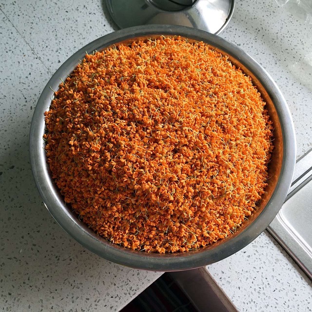 又一年桂花飘香时,自家院子种的金桂终于在寒露后开了。相比于银桂,金桂的味更香更浓,花色也更黄。想着就这样看它慢慢凋零挺可惜的,闲暇之时就出动全家把它采摘下来,已在寒冬季节也能一品它的芳香。