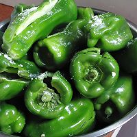 热锅倒油,放入刚刚酿好的辣椒,下锅煎,