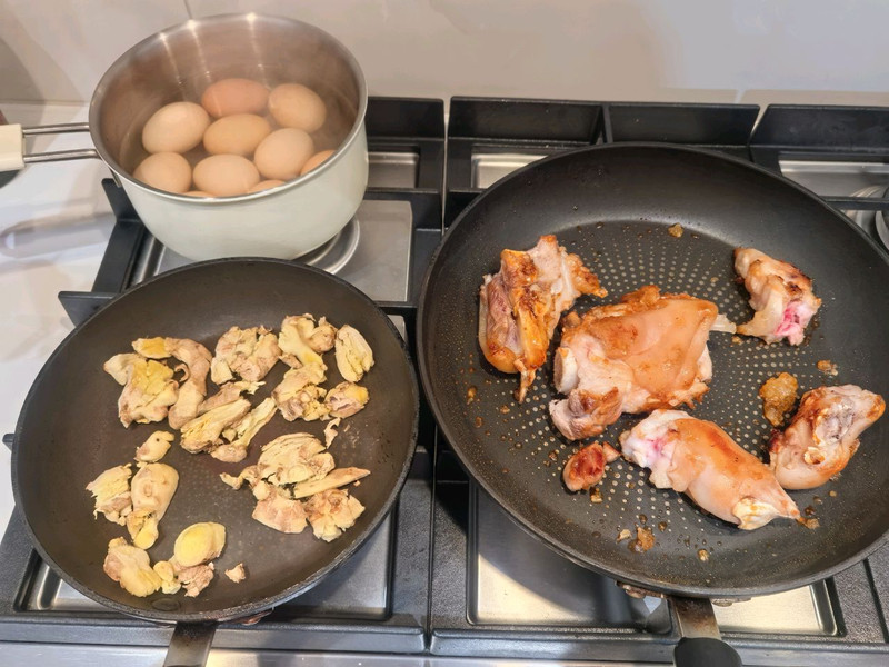 姜片也炒干水分,开水煮鸡蛋7分钟,开水煮的好剥壳