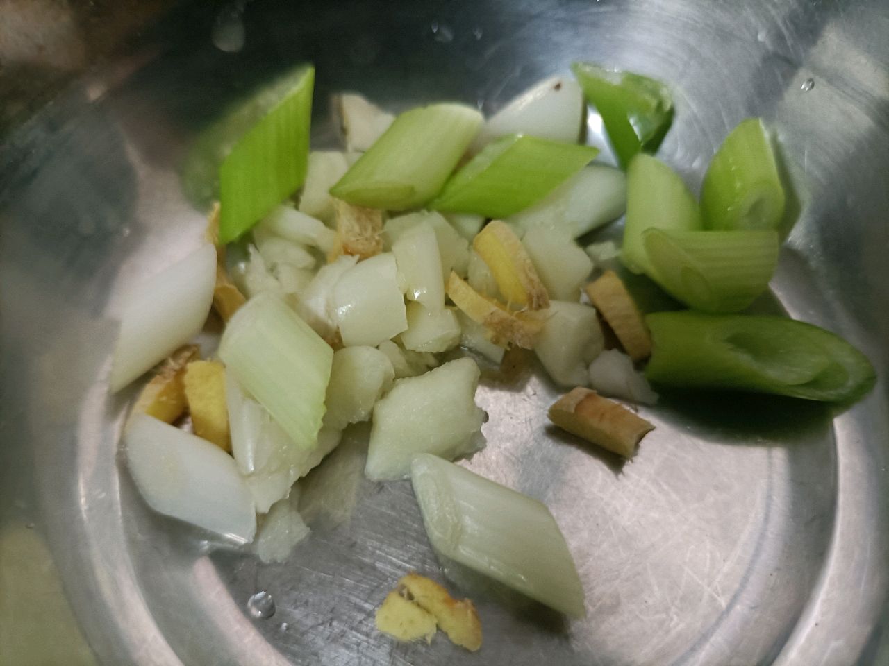 调料:姜1小块 蒜2瓣 料酒1汤匙 水淀粉适量 生抽1勺 老抽1勺
