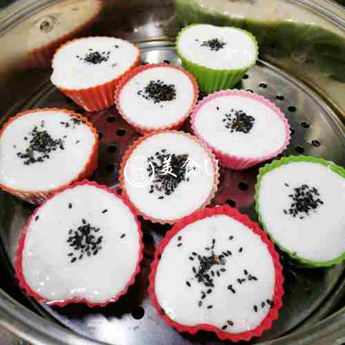 关于煮米浆: 你们看照片可以发现煮的米浆变粘稠了很多,用蛋抽快速搅拌过会有划痕,但一会儿之后就消失了,如果划痕不能快速消失,就说明煮过头了。用煤气灶的最小火大约需要煮两分钟的样子。 记住!宁可煮时间短一点,也不要煮过头了!如果感觉底下有煮结块的米浆,用蛋抽快速的划几下,把结块的米浆给划散开就可以了。 如果是添加了面粉的米发糕,那么就可以直接跳过加热这一步,加热主要是为了让米浆变浓稠,不至于沉底结块,纯米浆做的米发糕是一定要加热的。 关于酒味和酸味: 大家看我的酵母用量就知道比一般的面制品用量要大,这是为什么呢? 米制品发酵过度产生的酸味会比面粉制品大的多,所以要严格的控制发酵时间。如果酸味过大,酒味过大,说明发得时间长了,可以根据家里的实际温度,适当的缩短发酵时间,或者再增加一点点酵母的用量,让发酵速度增快。(这里的糖用量还是比较多的,所以最好用耐高糖酵母)