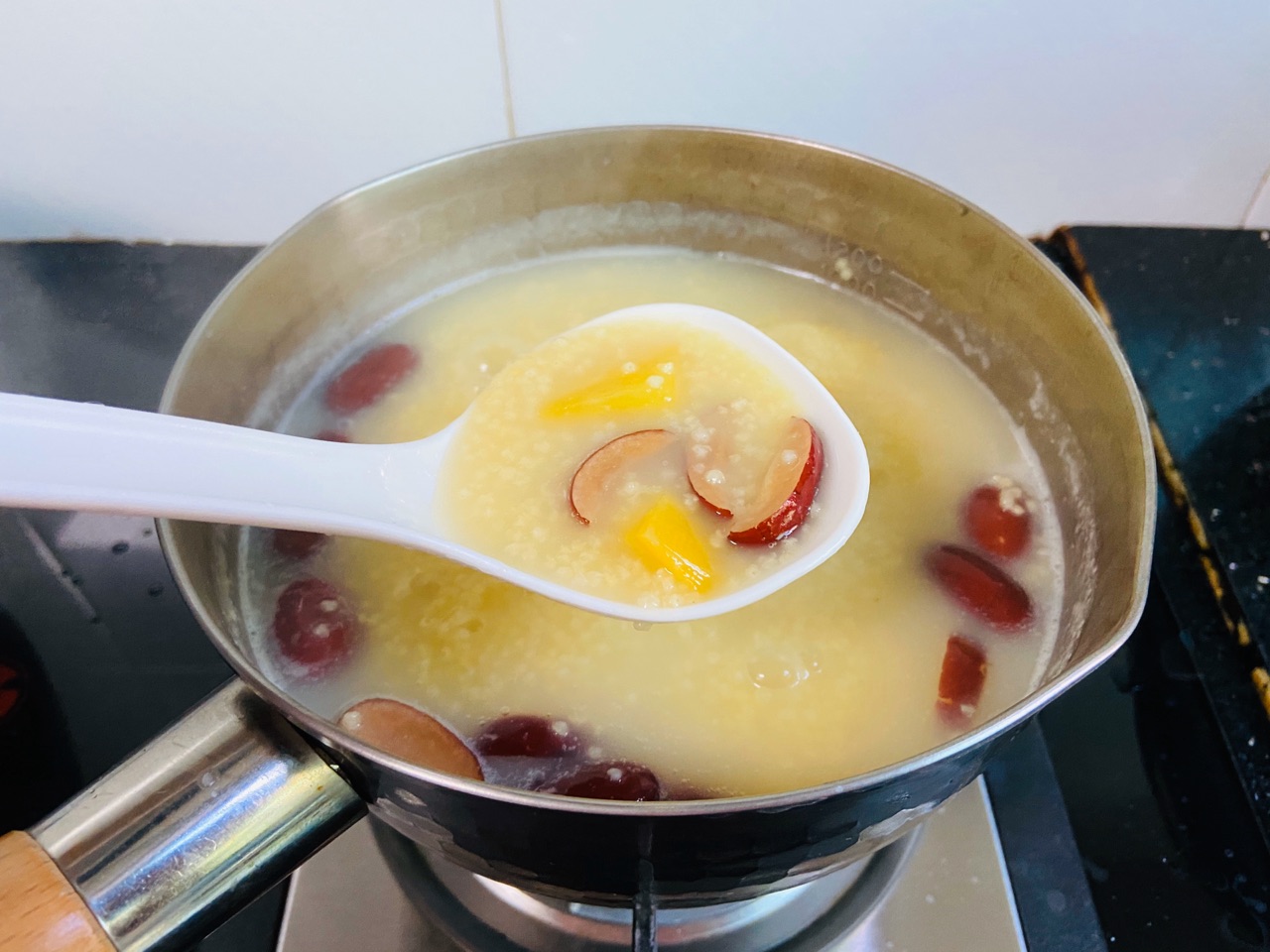 加入红枣小火煮20分钟左右,期间用汤勺搅拌防止粘锅底