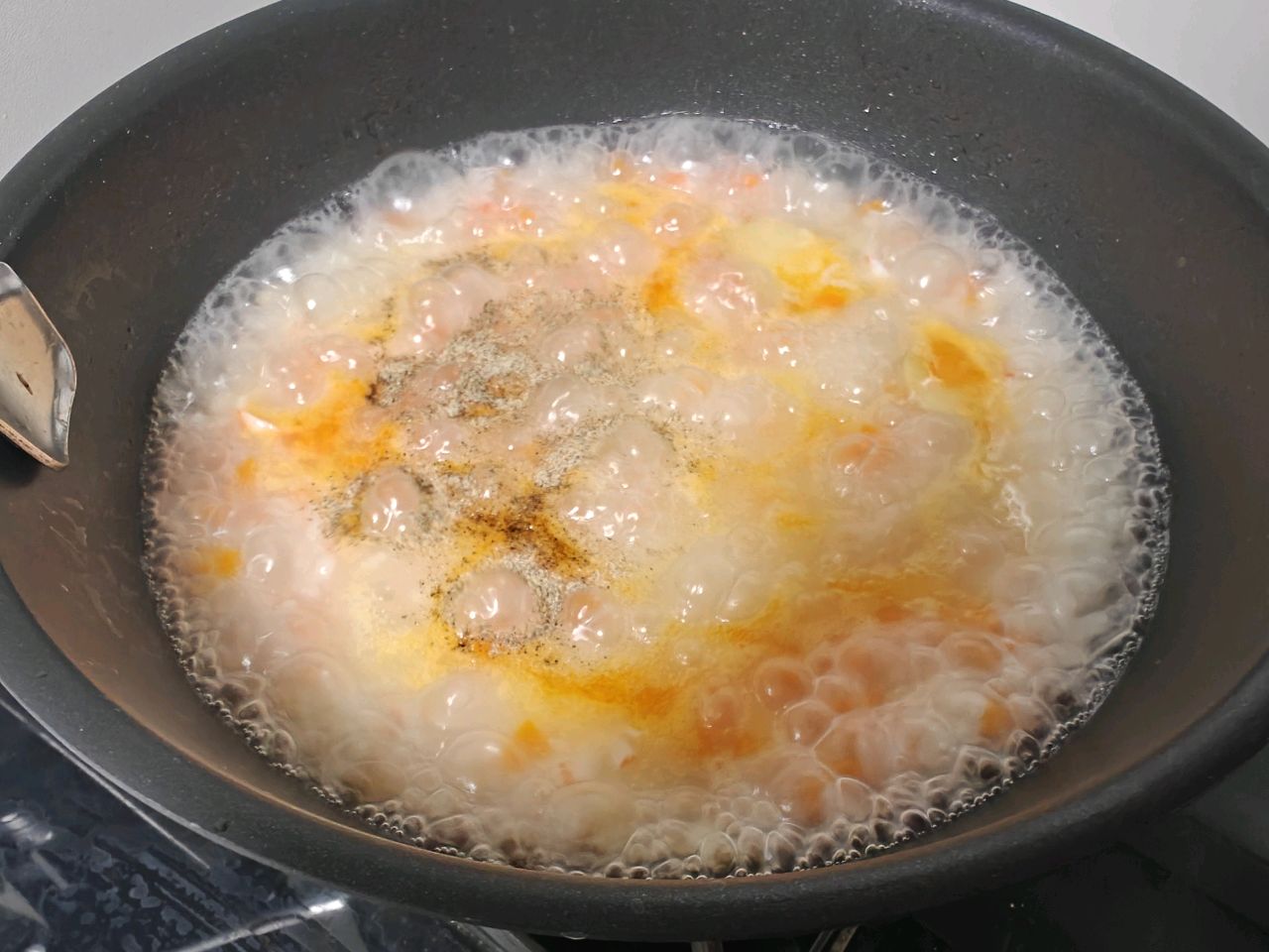 倒入准备好的虾,贝,姜片,蒜瓣,继续炖煮10分钟